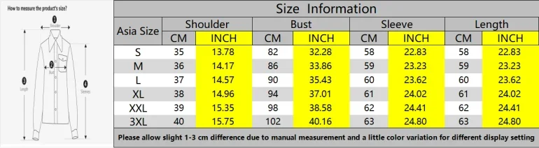 Friendly Reminder: Please strictly follow the size chart to select the size. Do not select directly according to your habits. The size may have 1-3cm differs due to manual measurement.(1cm=0.39inch, 1 inch=2.54cm) Because of lighting and screens display,Actual item's color may vary slightly from the images.