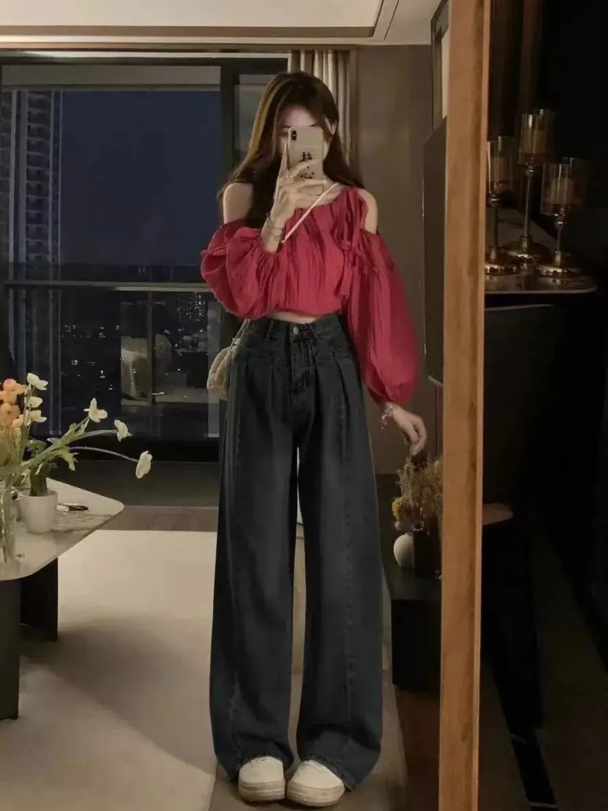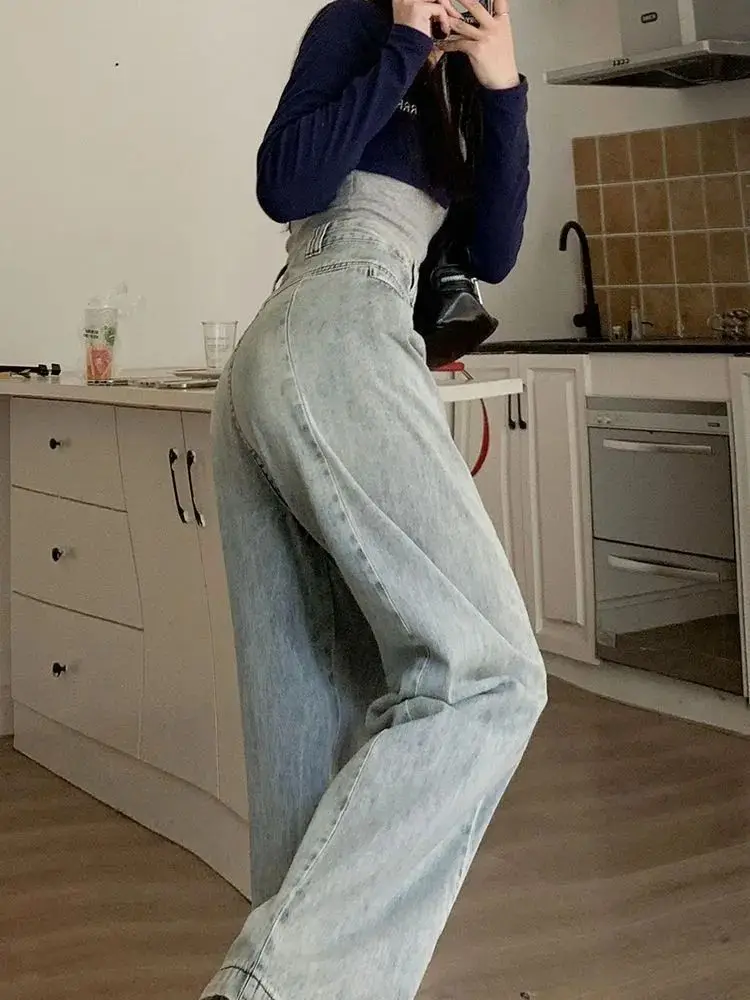 Straight Leg Women Jeans Y2K Style Slim Fit Casual Trousers High Waist Loose Baggy Pants Retro Vintage Streetwear Fashion